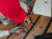 自然体験活動 キーホルダー作り 2020年9月24日 14時56分 少し雨が降ってきました。 少々の雨には負けず、楽しく外遊びです。 次はキーホルダー作りです。所員の方に作り方を教わって作りました。 思い出になる作品が出来上がりました。