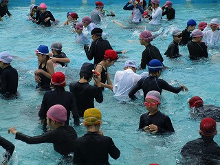 開会式で代表児童が述べた「今年は去年より泳げる距離を伸ばしたい。」「25m泳ぎ切る!」など、自分で決めためあてを、どの子も達成できるよう、頑張ってほしいと思います。